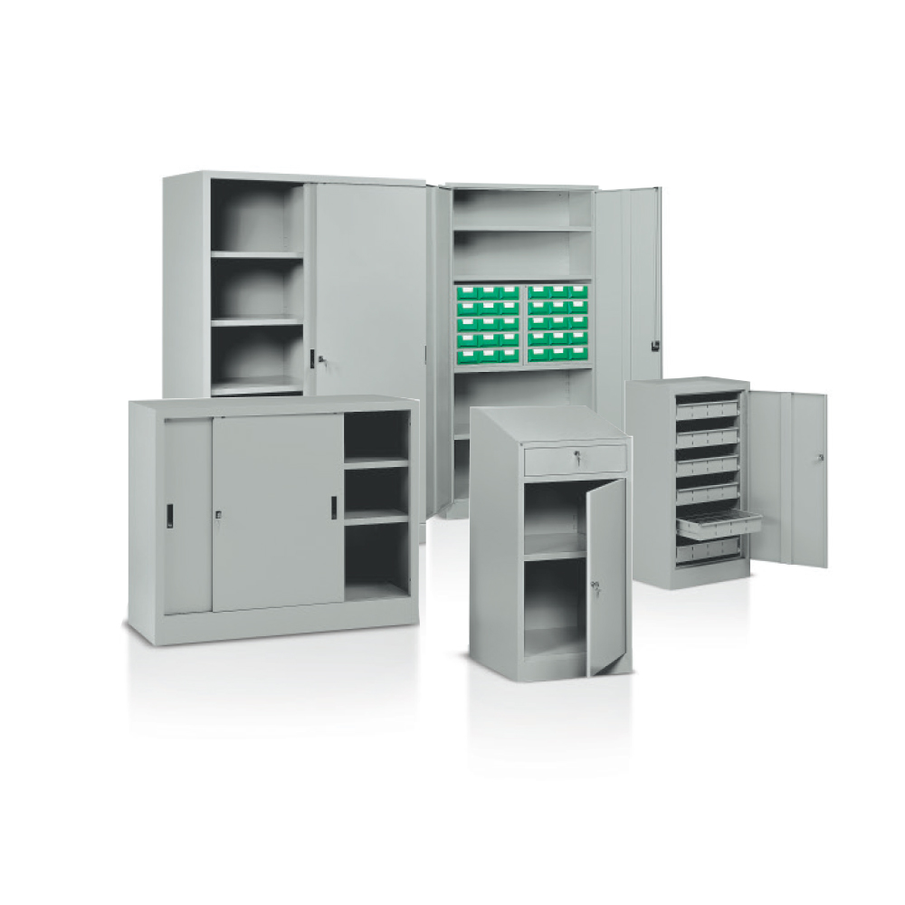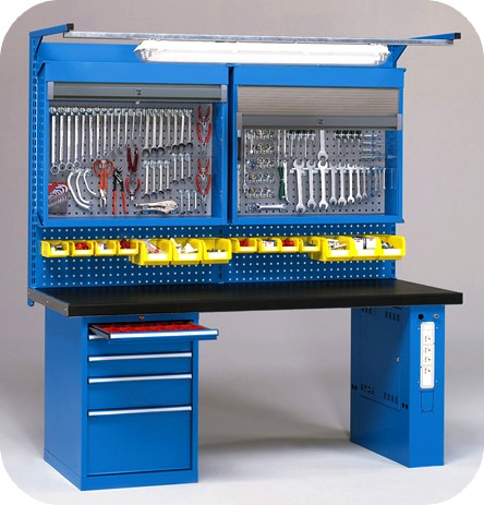 banchi da lavoro - armadi portautensili - contenitori metallici e in plastica - scaffalatura metallica - armadi spogliatoio - carrelli portautensili