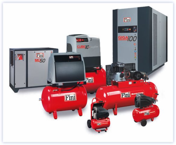 Compressori a vite e a pistoni - serbatoi aria - essiccatori - utensili pneumatici e accessori - avvitatori a pistola - cacciaviti a controllo coppia - micro smerigliatrici - carteggiatrici - maschiatrici - pistole soffiaggio aria - raccorderia pneumatica - tubi aria rilsan